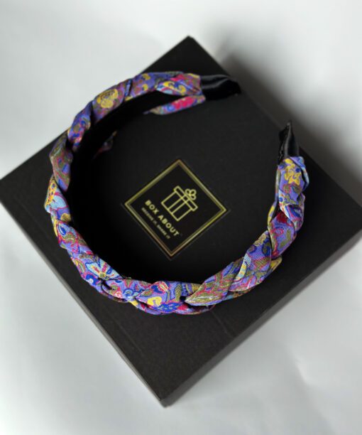 Žymos: aksesuarai plaukams, lankeliai, lankeliai plaukams, lankelis, Melsvos spalvos ir raštų plaukų lankelis, plauku aksesuarai, plauku lankelis