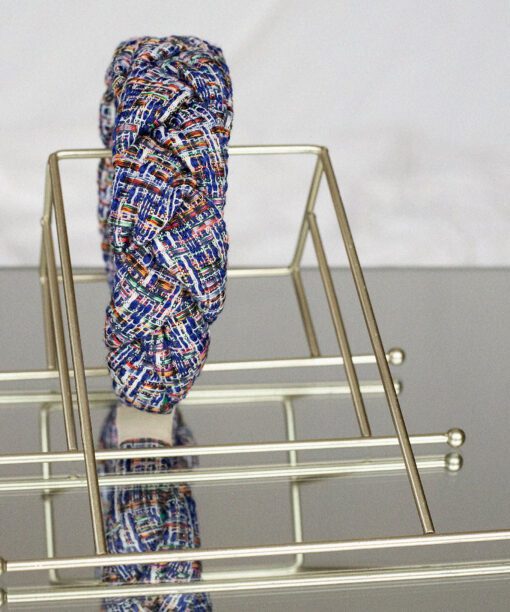 Twido audinio plaukų lankelis. Audinio pagrindas karališka mėlyna spalva su blizgiu siūlu. Masyvesnis aksesuaras Jūsų plaukams.