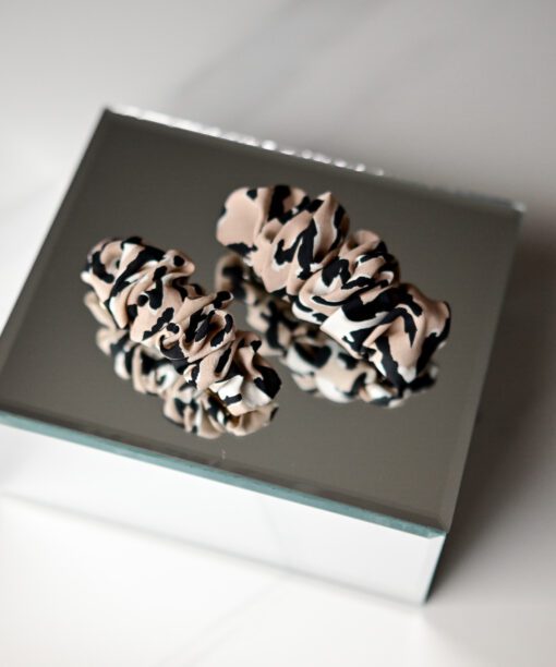 Gyvūnų raštų segtukas plaukams- „kruasanas”. Rauktas, plonesnio audinio segtukas skirtas plonesniems plaukams segti arba daliai plaukų.