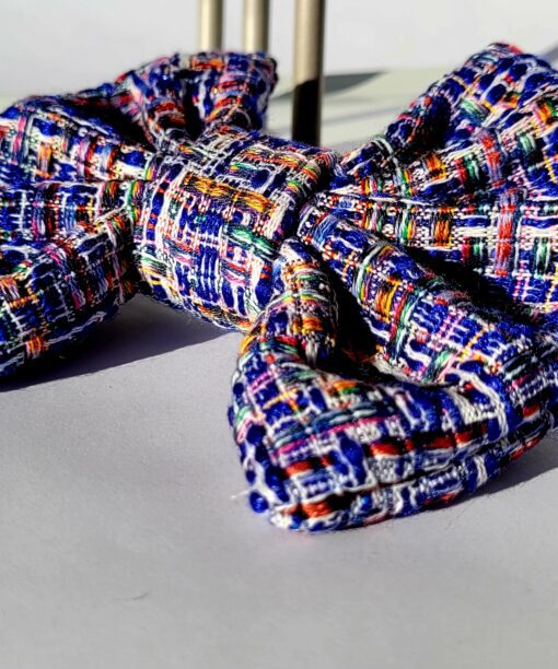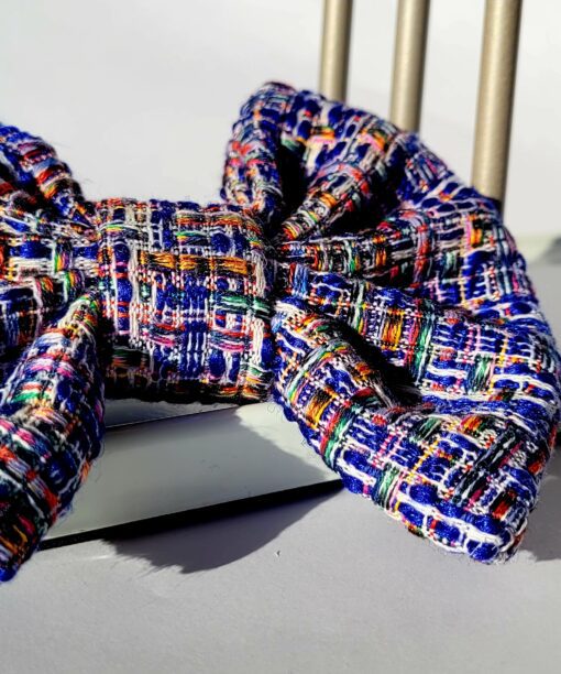 TWIDO audinio plaukų segtukas idealus pasirinkimas šviesių plaukų savininkėms. Didelis, tvirtai išlaikantis savo formą plaukų aksesuaras. Dominuojanti spalva mėlyna, persipina su baltos ir aukso spalvos siūlais.
