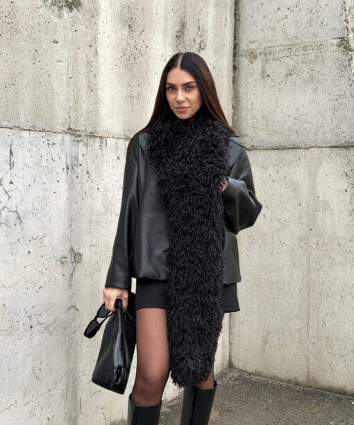 Žymos: Dirbtinio kailio šalikas, Gražus šalikas, Ilgas šalikas, Juodas šalikas, Kailinis šalikas, Šalikas